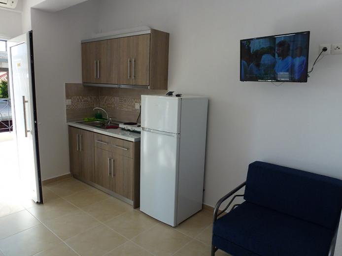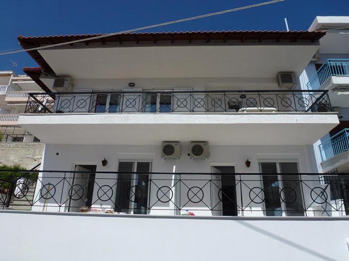 The completely new apartments "Ahileas" are located in the old quiet part of Sarti, 170m from the sea. The house consist of five-bed spacious apartments (40m2) on the high ground floor. The kitchen next to the drawer includes a microwave oven. All have SAT, WIFI and air conditioning. Towels and sheets are changed twice during their stay, and daily cleaning of the apartments is organized