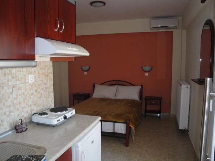 It is located in the old part of Sarti 160m from the beach and about 70m from the main square. They offer studios for two to three people located on the low ground floor, on the first and second floors. All have TV, a signal for free wireless internet as well as an air-condition