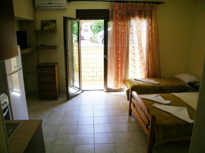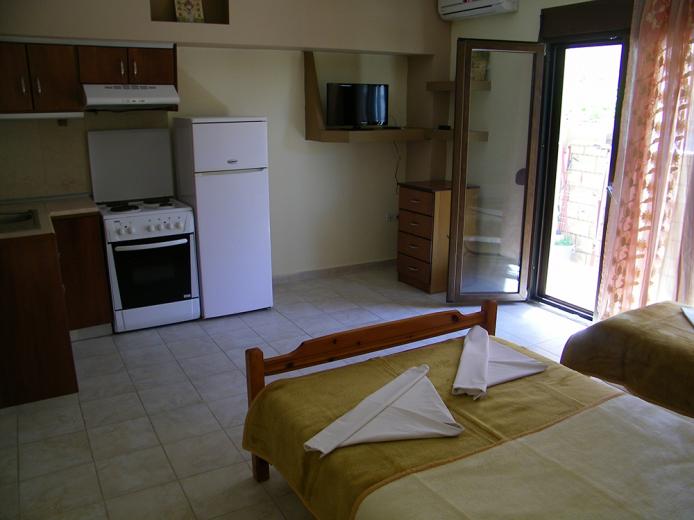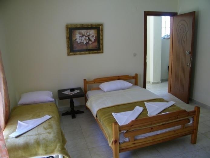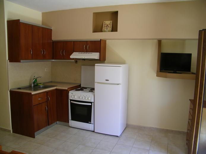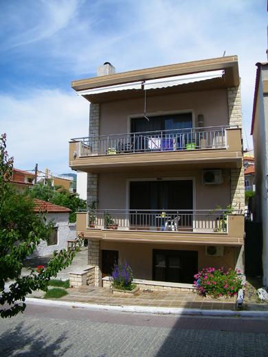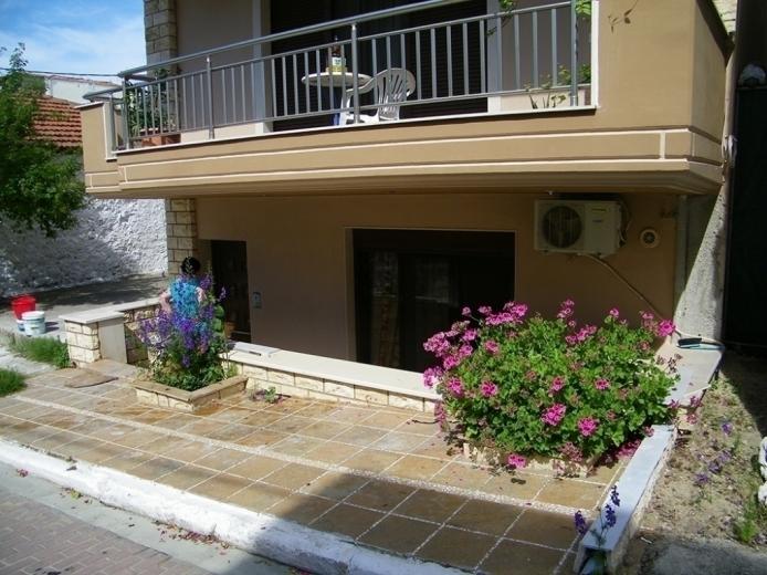 House Dimitra is located in the old part of Sarti near the church about 100m from the sea, and only 40m from the main square in Sarti. The comfortable five-bed apartment is located on the low ground floor. It has TV, signal for free use of wireless internet, as well as air condition. The kitchen part is spacious than in most apartments, has a classic stove with four rings and oven as well as a large fridge.