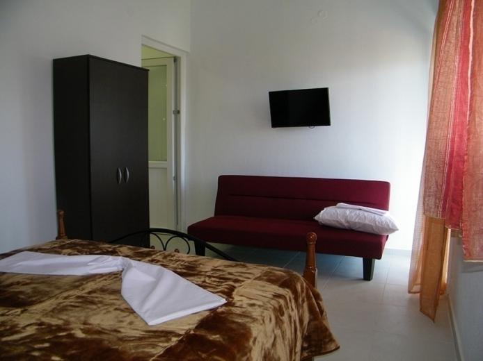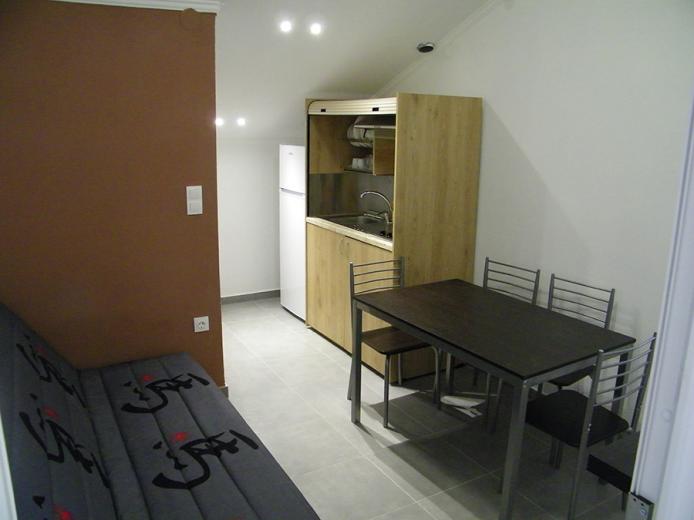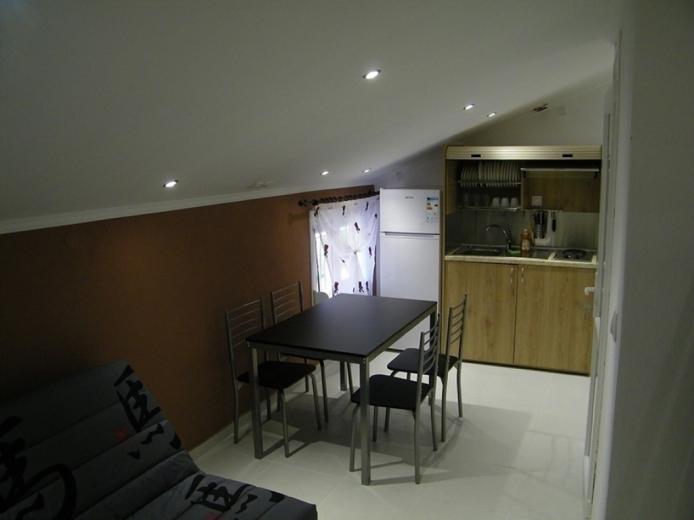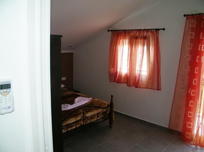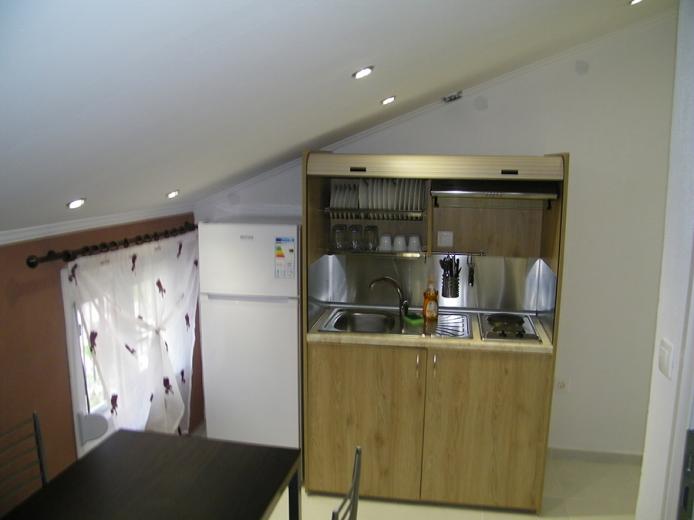 The apartments are located in the attic, the bathrooms are arranged under the slope so that the height of the shower is normal but the height should be bounced when entering the sloped door. The terraces are beautiful overlooking the sea, but there is some dining rope, so there is a table for dining in the living room.In four-bed apartments in the living room there are no windows, but the daylight is compensated by the sandblasted glass on the door between the rooms.there is the possibility of staying 5th person in apartments for four. In the six-bed apartment there are bunk beds and a sofa bed for two persons in the living room as well as a french bed in the bedroom