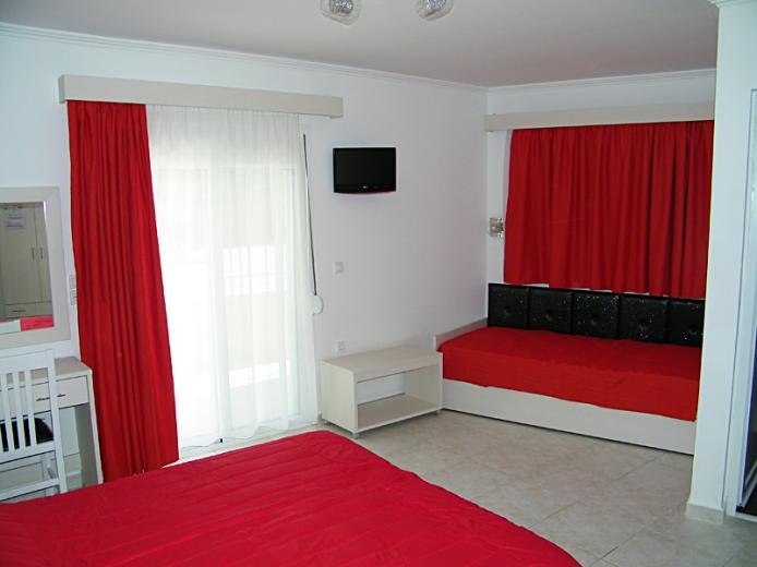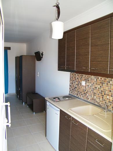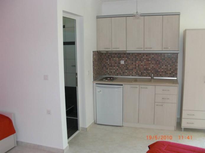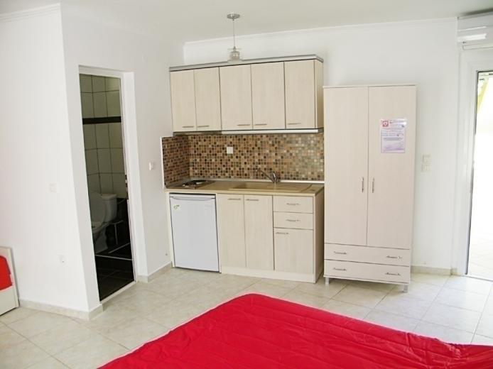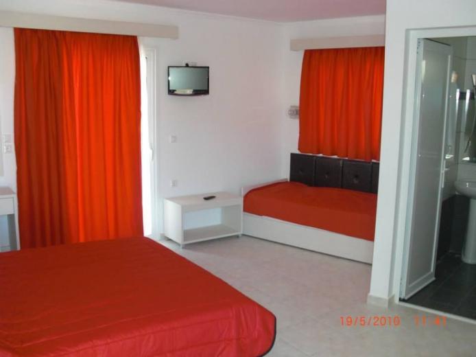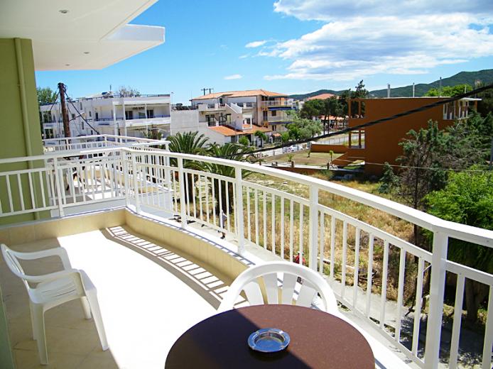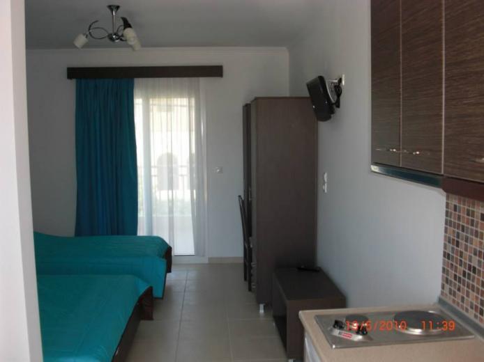 Recently constructed situated in the center of Sarti, 100 m from the clear beach and only some steps away from the picturesque center. All the modern furnished studios consist of either one double bed and one single bed for 2 - 3 persons or one double bed and one pull-out sofa bed for 4 persons.WC and shower. Balcony partly with mountain view and street view.It's location in the heart of Sarti ensures you direct access to shopping street, Taverns, Discos, Cafes and Bars. A good choice for young people who love the Night Life.