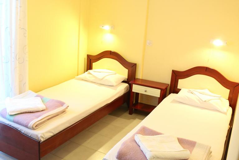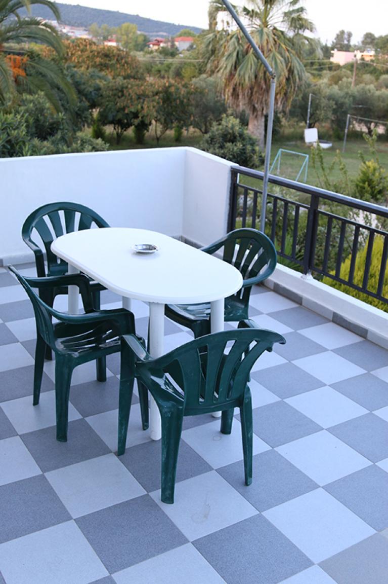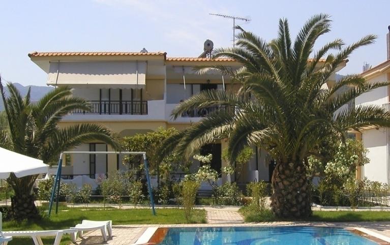 It is located about 390m from the sea.A very nice and quite complex with a swimming pool at your disposal with sunbeds and chairs,Big yard with barbecue and parking. Studios and apartments are located either on the ground floor or on the first floor. All have satellite TV, wireless internet and air condition. The terraces have views either at the pool or at the adjacent vineyards and garden