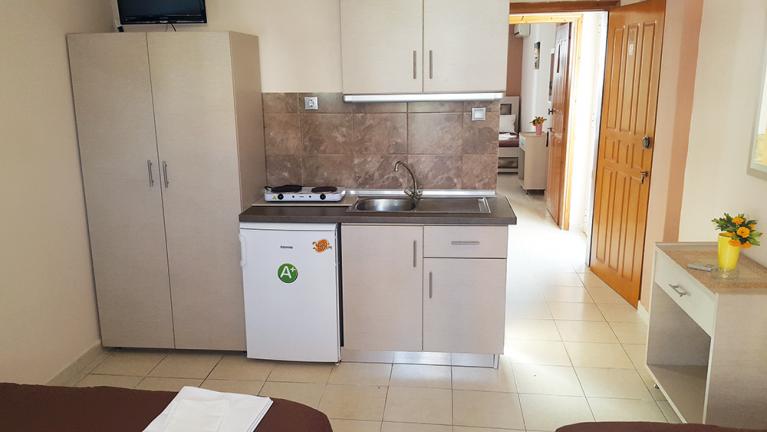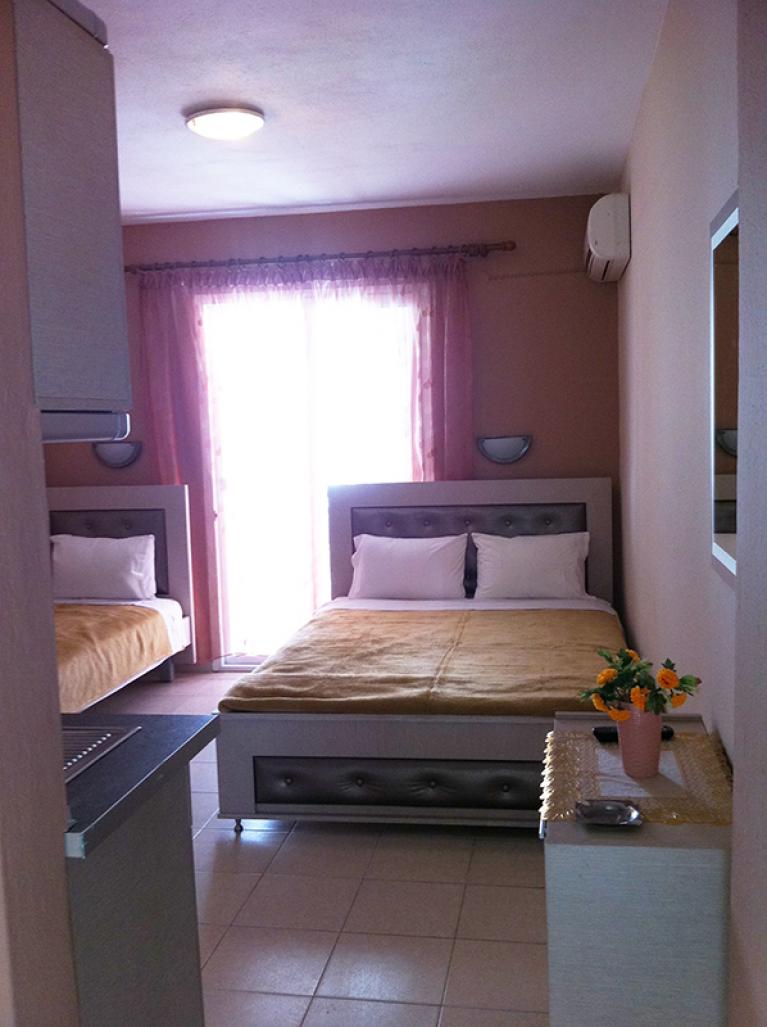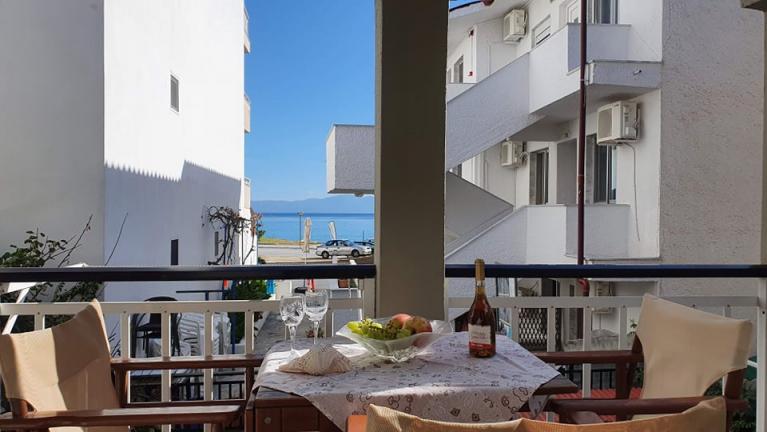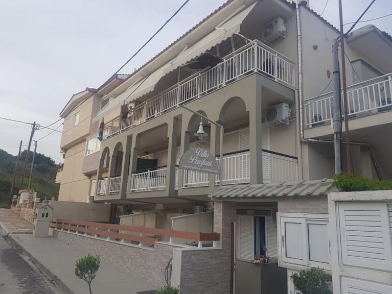 It is located 50m from the beach in the new part of Sarti (20 minutes walk from the center) called Sarti Beach, especially popular to families with small children due to fine sand and long shallows. The first floor was completely renovated and the house was given a suffix in the name and became Pirofani New. All have satellite TV, air condition, as well as a signal for free use of the wireless Internet. The courtyard with a barbecue in the shade is an ideal place to hang out.